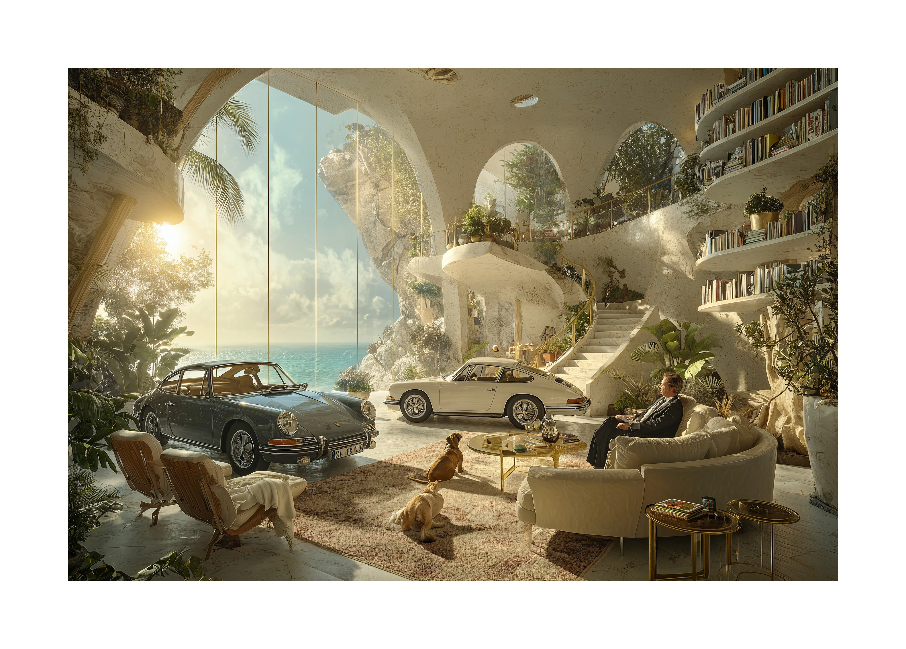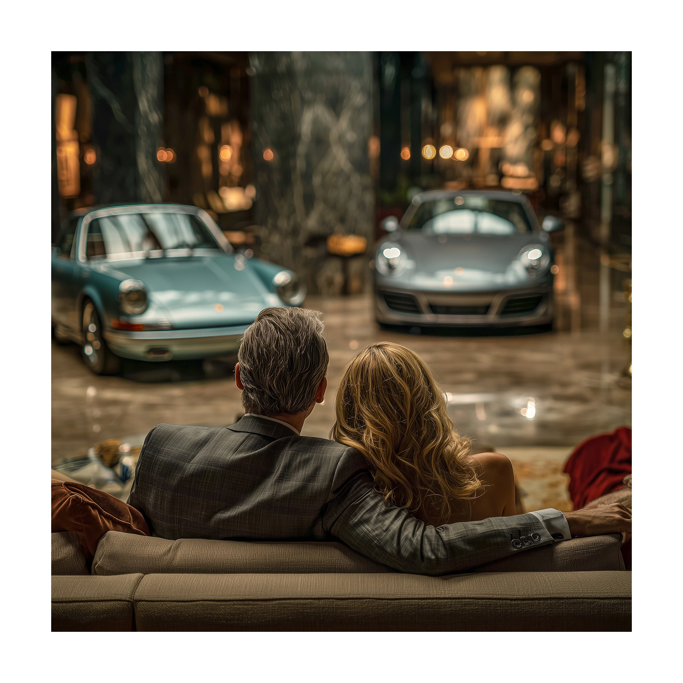 One hundred interior worlds where the Porsche is not parked — it is placed.